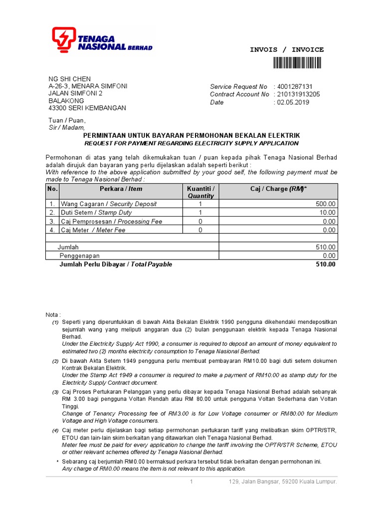 Contoh Surat Permohonan Pemotongan Bekalan Elektrik. Berikut kenyataan media yang telah dikeluarkan oleh Kementerian Tenaga dan Sumber Asli mengenai tiada pemotongan bekalan elektrik bagi pengguna domestik di Semananjung untuk rujukan anda. Po Roarlt Rn Tenaga Nasional Berhad.