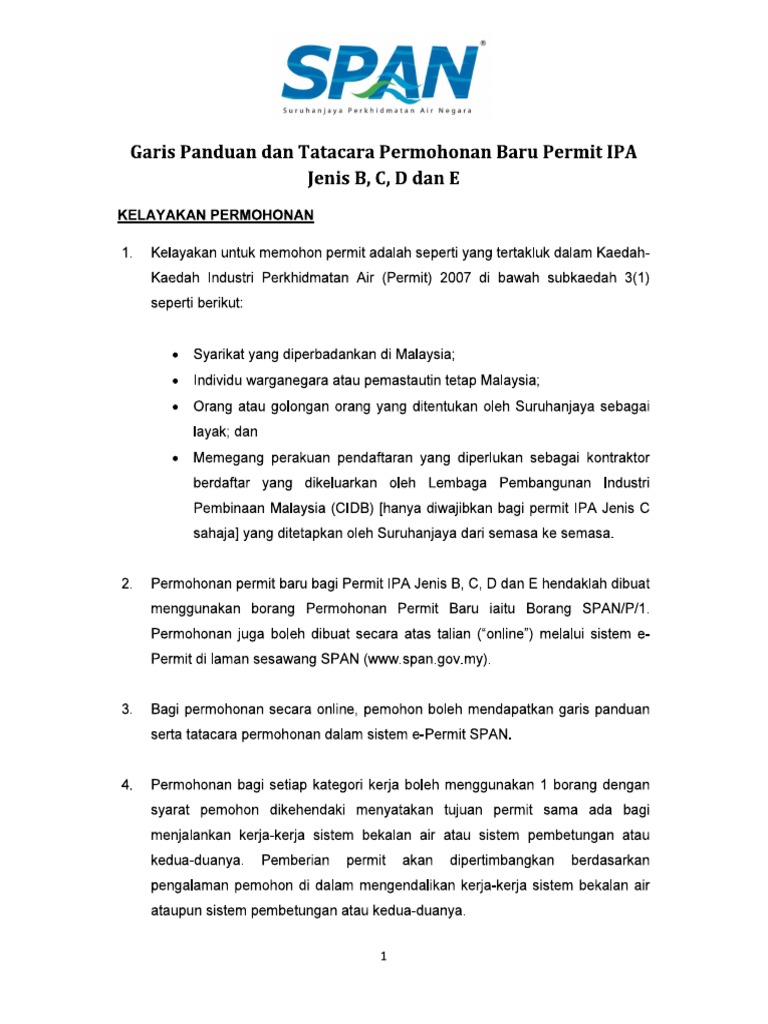 Keputusan Pelantikan Perunding Bagi Pembangunan Garis Panduan Keselamatan Pembekalan Dan Penggunaan Bahan Kimia Klorin Untuk Sistem Bekalan Air. PERMOHONAN BAGI PUNCA BEKALAN AIR Page 1 of 3. Jan 01 2019 Qualified Person-QP dan yang berdaftar dengan Suruhanjaya Perkhidmatan Air Negara SPAN.
